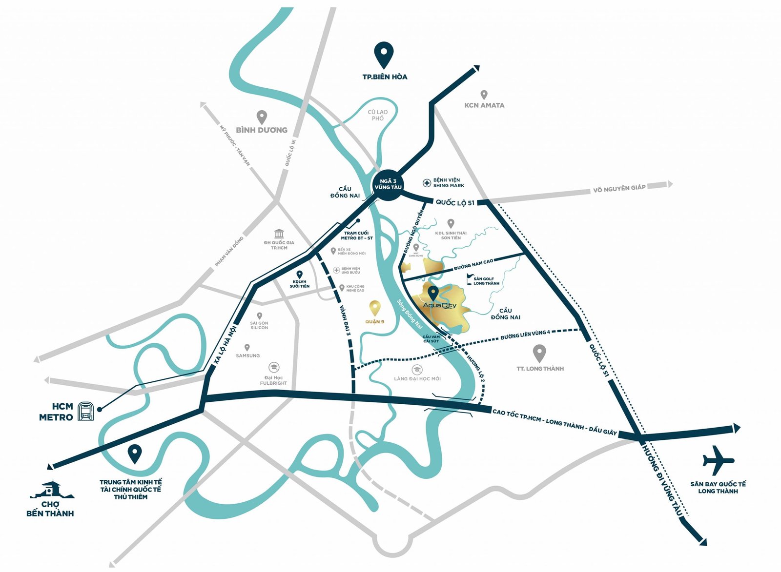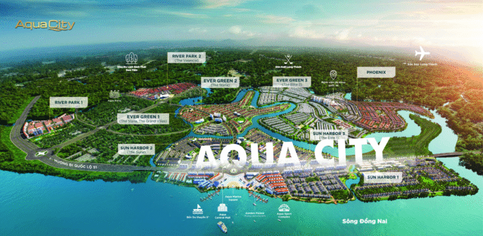 Tiện ích Aqua City• Trường học liên cấp, Công viên cây xanh, Quảng trường trung tâm, bến Du thuyền,…